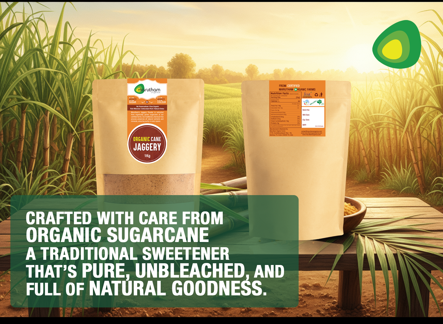 100% Pure & Organic: Made from sugarcane grown in our own certified Marutham Organic Farms