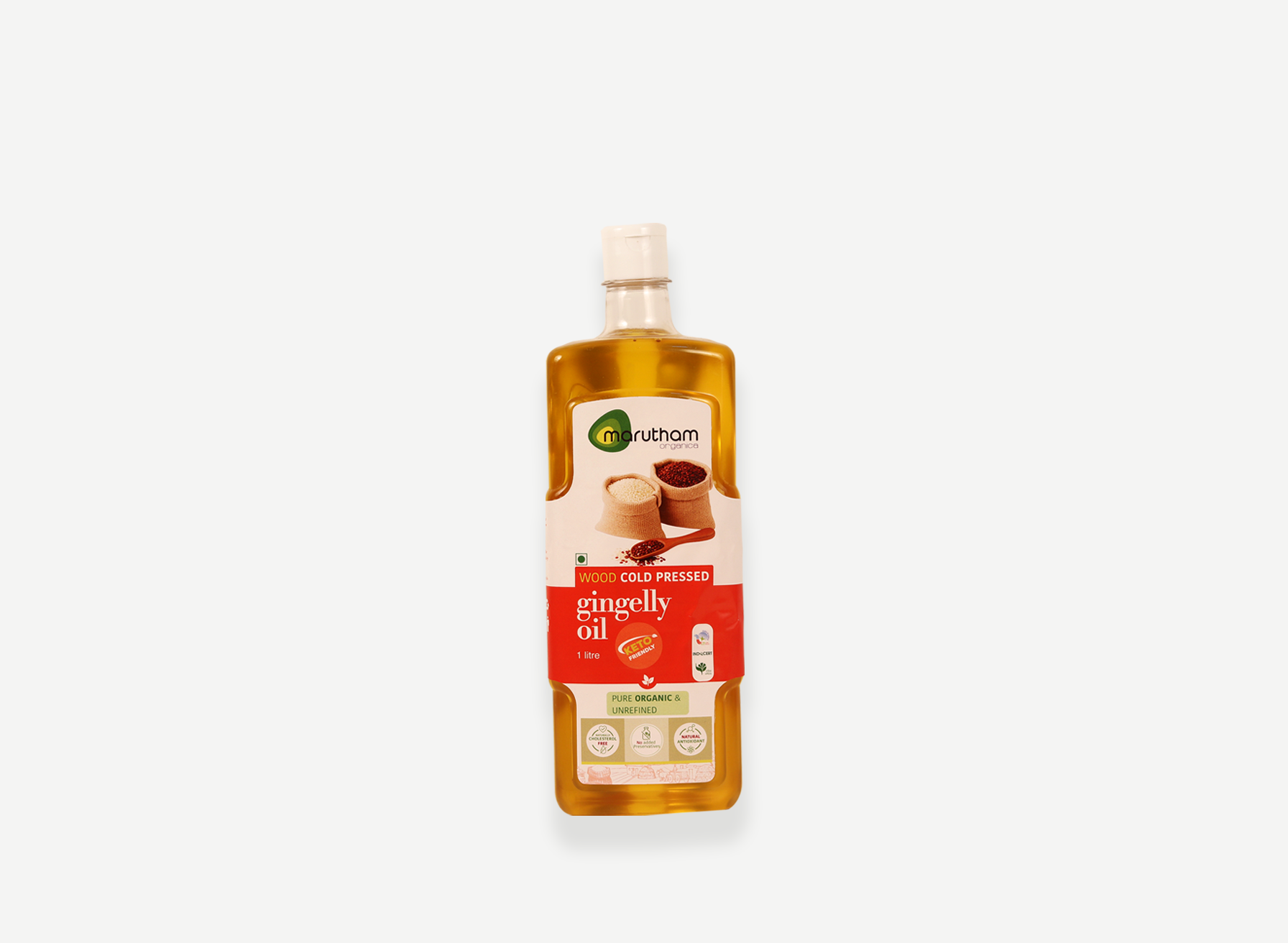 Pure, organic and unrefined wood cold-pressed gingelly oil, naturally cholesterol-free and keto-friendly with zero trans fat. Free from preservatives and rich in natural antioxidants for traditional cooking and overall nourishment.